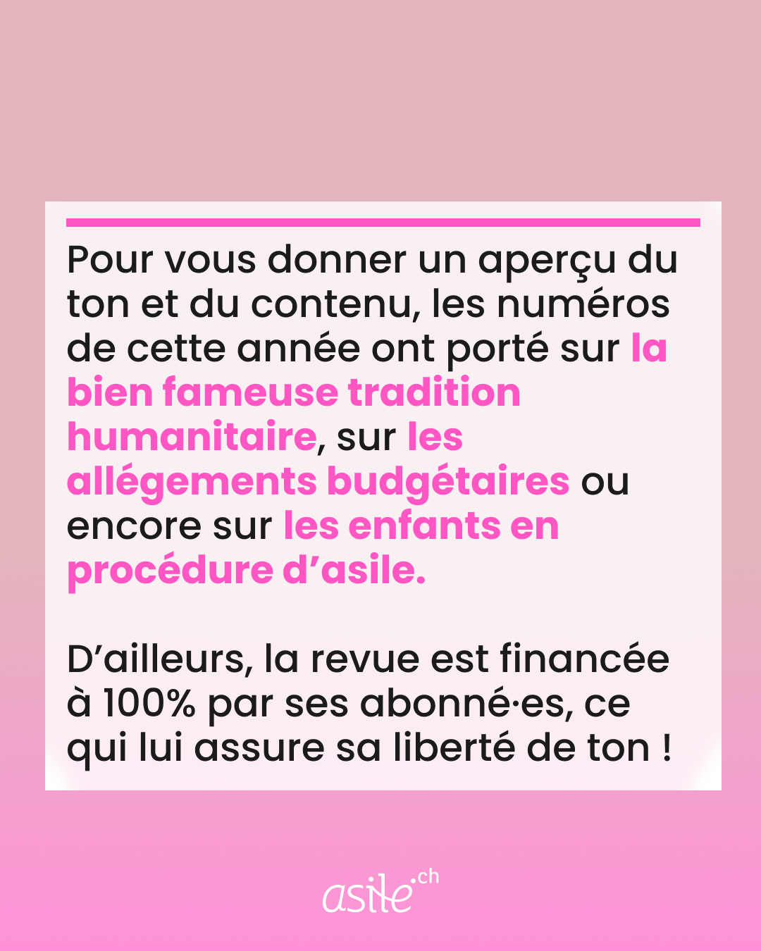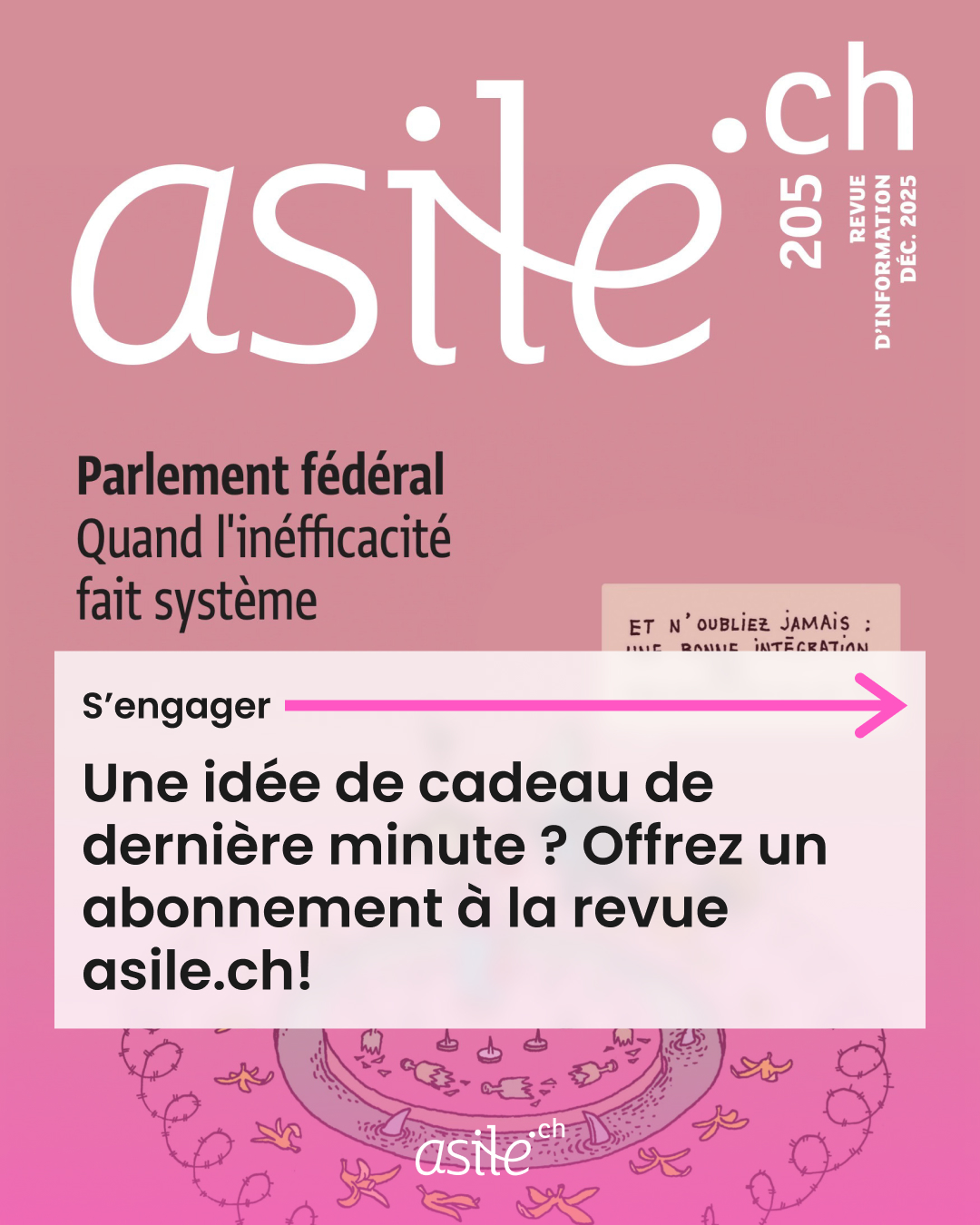 Une idée de cadeau de dernière minute? Offrez un abonnement à la revue asile.ch!