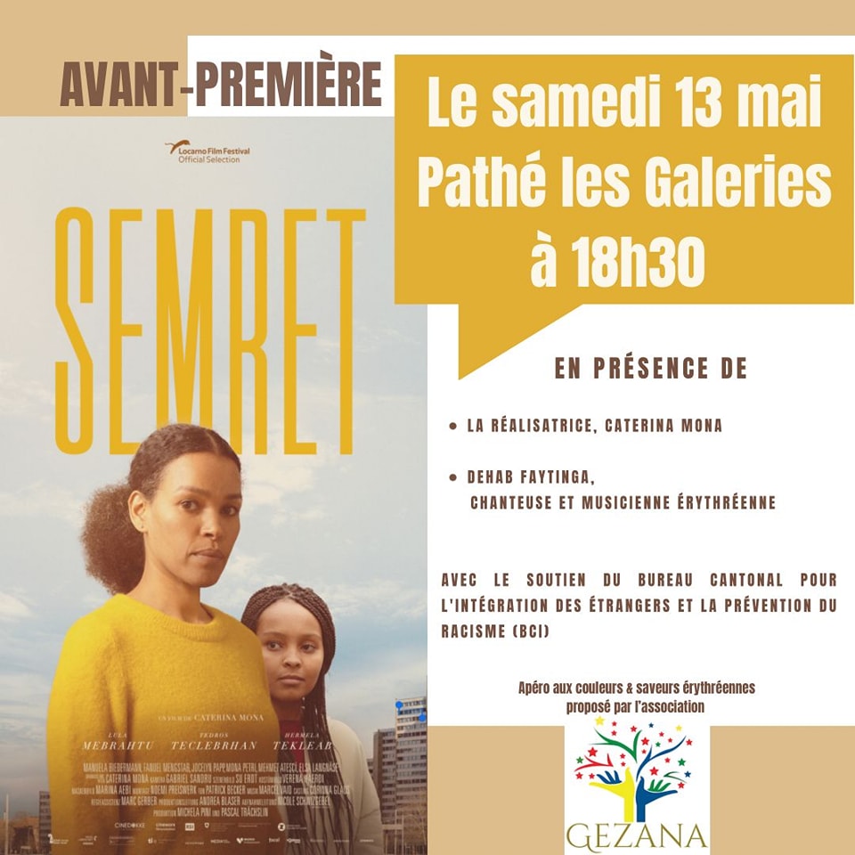A l’occasion du 30e anniversaire de la reconnaissance de l’indépendance érythréenne par l’ONU, Gezana en collaboration avec le Cineworx, nous vous invitons à l’avant-première du film SEMRET (voir flyer ci-dessous) le 13 mai 2023 à 18h30 au cinéma Pathé les Galeries à Lausanne.