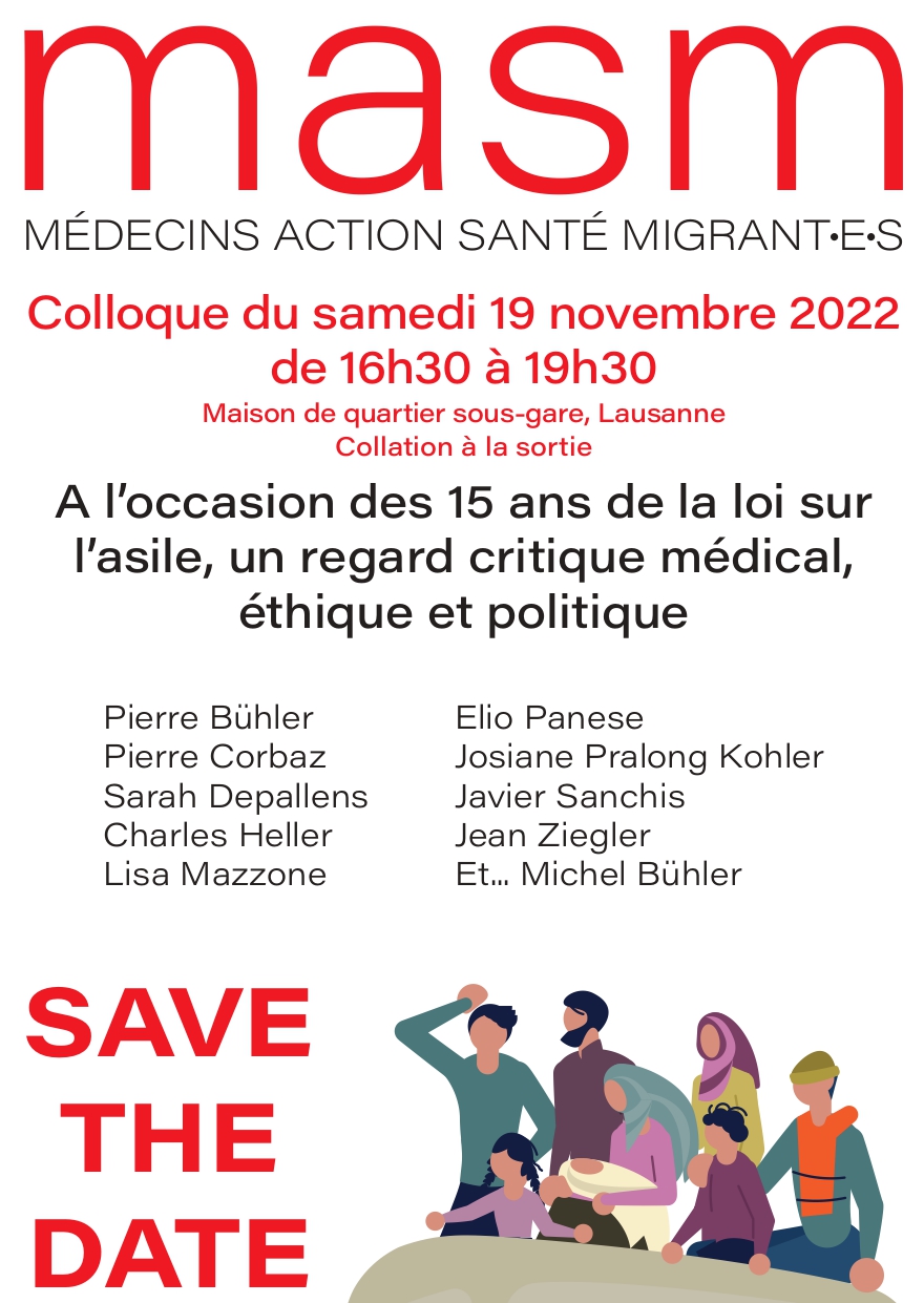 Médecins Actions Santé Migrant⋅e⋅s regroupe des médecins qui luttent pour le respect des droits humains dans le secteur de l’asile témoignant du vécu et de la souffrance des réfugié⋅e⋅s. A l’occasion des 15 ans de la loi sur l’asile, l’association organise le 19 novembre un colloque sous un regard critique médical, éthique et politique.