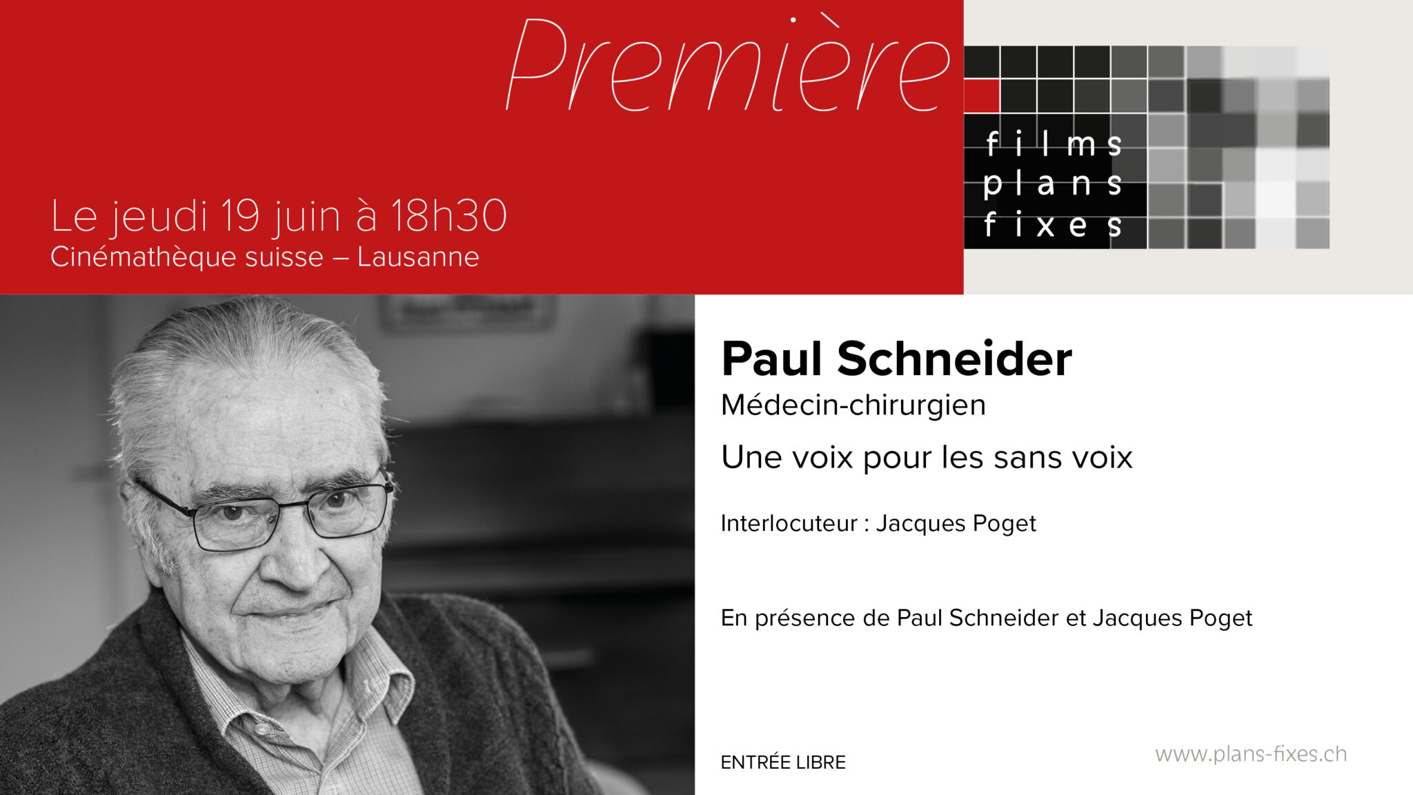 Le jeudi 19 juin, la Cinémathèque suisse accueillera la première du film «Paul Schneider. Une voix pour les sans voix», réalisé dans le cadre de la série Plans Fixes. Une soirée toute particulière en hommage au Dr Paul Schneider, doyen de l’association Médecins Action Santé Migrants (MASM), dont l’engagement sans relâche continue d’inspirer.