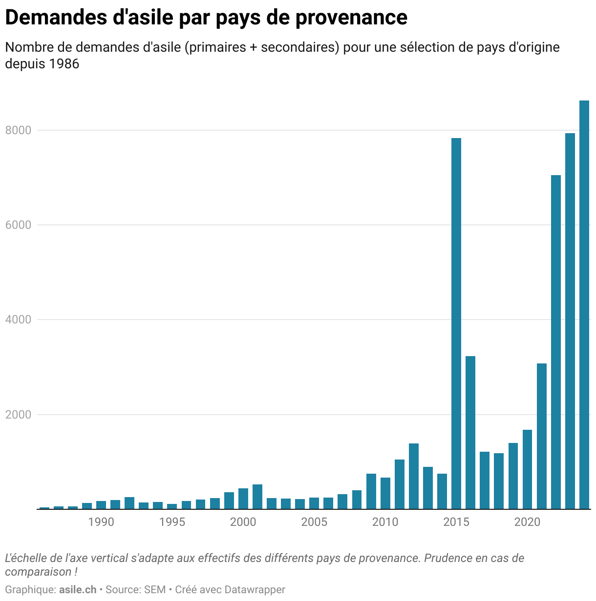 Chaque année, le Secrétariat d’État aux migrations indique quels sont les principaux pays de provenance des personnes décomptées dans les « nouvelles demandes d’asile ».