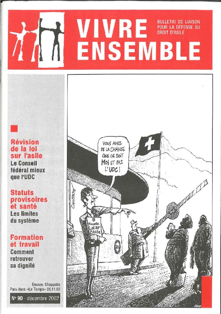 Tous les anciens numéros de la revue asile.ch / ex-Vivre Ensemble sont disponibles au téléchargement depuis l’édition de juin 99 (soit le numéro 73)